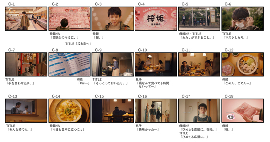 動画では「風邪を持ち込まないようにマスクをする」や「飲み会は春まで我慢」、「送迎の時は、音楽の音量を事前に小さくしておく」、「寒いから夕食は体が温まる鍋にする」など、受験生の子どもをさまざまな「ひめたる応援」で支える親の姿や、時に思いやりが通じず、すれ違いながらも、子どもをサポートし続ける親の愛情を丁寧に描いています。