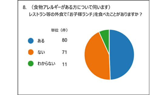 2024年4月に食物アレルギーがある方について伺ったアンケートからは、“外食でお子様ランチを食べたことがない割合”は、約43%という実態が浮かび上がりました。また“特定原材料7品目を使用していないお子様ランチ”の喫食意向は約90%と多くの方が食べたいと回答(ぜひ食べたい+食べたいの合計の割合)。