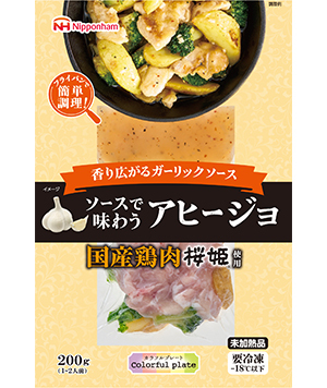 このたび発売する「カラフルプレート 桜姫®使用アヒージョ」「カラフルプレート 桜姫®使用ラタトゥイユ」「カラフルプレート 麦小町®使用バジルポーク」は、いずれもニッポンハムグループのブランド食肉を使用しています。また、自社製造エキスをプラスしたこだわりのソースと彩りのよい野菜で、家庭では手間のかかるメニューをフライパン調理で簡単に再現できます。さらに食べ切りサイズで冷凍保存ができ、忙しい日々の食事における時短ニーズやストック需要にも対応しています。