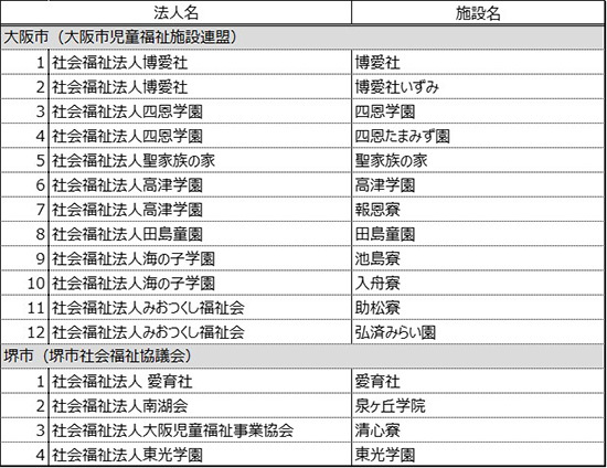 ■寄付先の児童養護施設(順不同)/大阪市12施設・堺市4施設