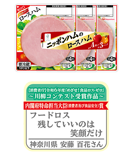 日本ハム株式会社(本社:大阪市北区、代表取締役社長:井川 伸久)は、食品ロス削減の普及啓発に貢献するため、消費者庁の食品ロス削減に向けた取り組みの一つである令和6年度「めざせ!食品ロス・ゼロ」川柳コンテストの受賞作品の一部を「中華名菜酢豚」などの商品パッケージに10月より順次掲載します。また、当社の各ブランドのSNSアカウントから食品ロス削減に向けた情報発信を行います。10月の食品ロス削減月間に向けて、本取り組みを通して、広く食品ロス削減における意識向上を図るとともに、今後も社会課題の解決に取り組んでいきます。