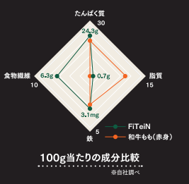 ※FiTeiNの100g当たりの成分について(和牛もも(赤身))との比較
