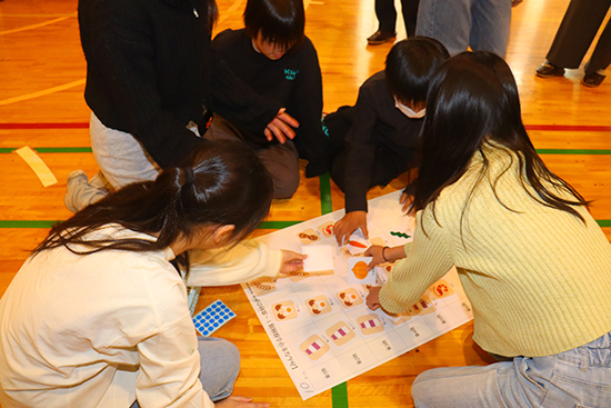 児童たちは、グループで話し合い、リレー形式で体育館中央に配置した「食材の海」へカードを集めに行く仲間には声を掛け、協力して取り組んでいました。ワークについて「どれが特定原材料なのか当てるのが難しかった」という声もありましたが、活気のある会場には笑顔で学ぶ姿が多くみられました。また、「特定原材料8品目について初めて知った」「今後は食品の裏の表示を見てみようと思った」という感想も聞かれ、食物アレルギーをより理解する機会になったようです。