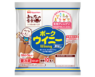 ポーク ウイニー食物アレルギーに対応した皮なしタイプのほそびきウインナーです。