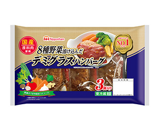 8種野菜溶け込んだデミグラスハンバーグ8種類の野菜を入れ、野菜のうま味が詰まったデミグラスソースに仕上げました。