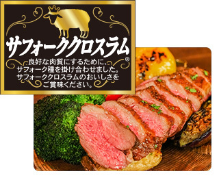 良好な肉質にするために、サフォーク種を掛け合わせました。サフォーククロスラムのおいしさをご賞味ください。