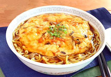 野菜・かにが入った具と、しょう油としいたけが入ったあんかけソース付きです。