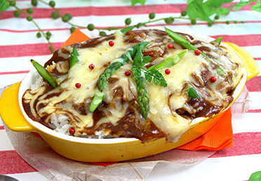 小麦粉(国内製造)、牛脂肪、じゃがいも、牛スープ、チャツネ、砂糖、植物油、ソテーオニオン、トマトペースト、食塩、ショートニング、カレー粉、濃縮りんご果汁、乳等を主要原料とする食品、しょう油、ヨーグルト、牛肉、ウスターソース、クミン末、ウコン末、ナチュラルチーズ、オニオン末、しょうが、にんにく、酵母エキス、カルダモン末、コリアンダー末、黒こしょう末、ビーフエキス調味料、準チョコレート、卵黄、赤唐辛子末/調味料(アミノ酸等)、カラメル色素、酸味料、香料、(一部に卵・乳成分・小麦・牛肉・大豆・豚肉・りんごを含む) |