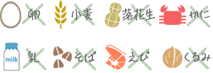 「卵・乳・小麦・そば・落花生・えび・かに・くるみ」を使用しません。