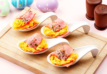 彩りキッチンハーフベーコンのスクランブルエッグ