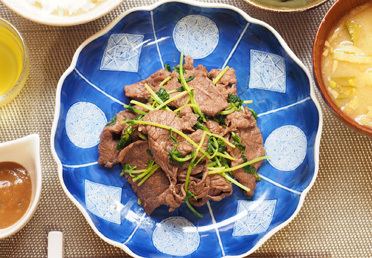 牛こま肉と春野菜のオイスターソース炒め