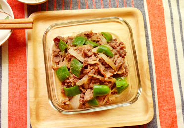 レンジで牛肉とピーマンの味噌蒸し