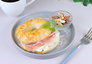 新玉ねぎと生ハムのもちもちベーグルサンド