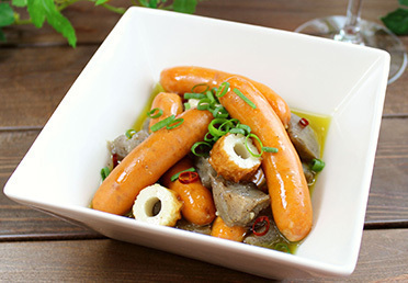 スパゲッティを表示通りに茹で、茹で上がる3分前にシャウエッセンを加える。
