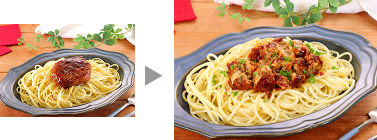 ハンバーグを崩してボロネーゼ風