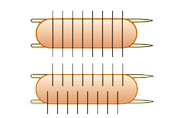 ジャバラ切りは竹串を両側に置いて切ると均一に切れます