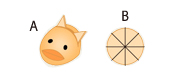 A(頭)の切り込みに、B(耳)を8分の1にし、2枚を(A)に刺し込み黒ゴマで目を付ける。