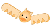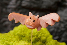 C(羽)をA(頭)の両側にパスタで付ければコウモリの出来上がり!