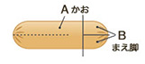 1本目のウインナーを、A(かお)、B(まえ脚)に切り分けます。