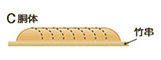 C(胴体)の両端に竹串を置き、3mm間隔に切込みを入れます。