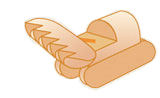ウインナーを(A.B)、2本ご用意下さい。Aウインナーを縦に4等分。ショベル・車輪の部位に切り分ける