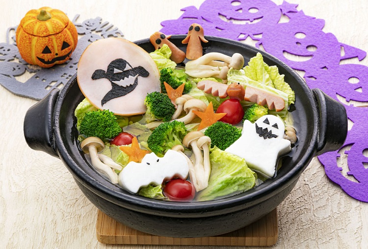 おでんの具材に、海苔で切り抜いた目や口をつけます。ご家庭でのハロウィンパーティーが盛り上がるのは間違いなし♪