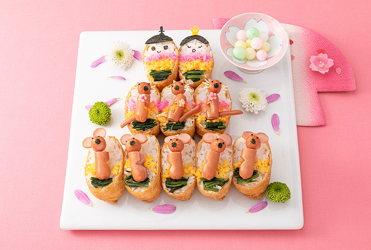 いなり寿司を一口サイズにすると 小さなお子様でも食べやすくなります。