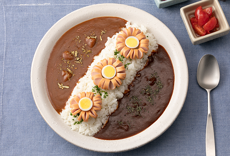 カレーから顔をのぞかせるカバは大きめのウインナーでつくると迫力満点!