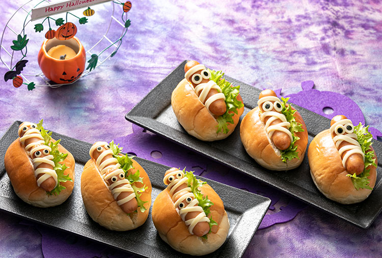 持ち寄りハロウィンパーティにぴったりのミイラのホットドッグです。