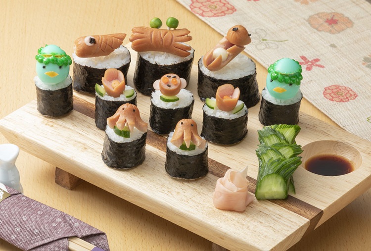 かわいい動物たちが手巻き寿司の中からのぞいてる。