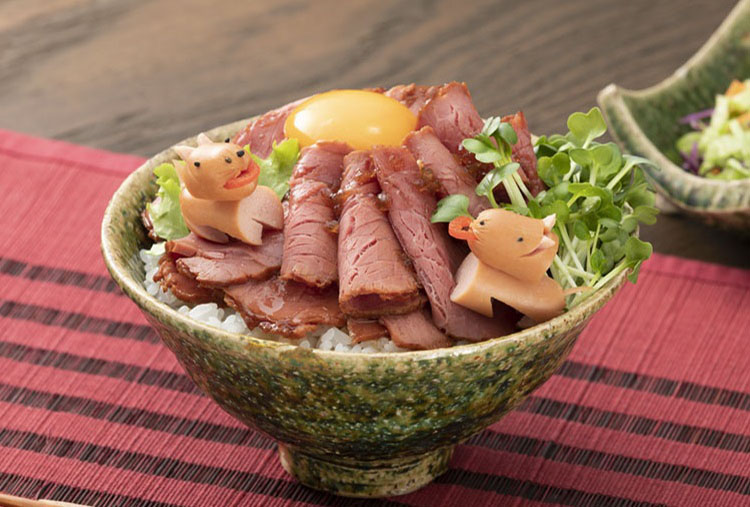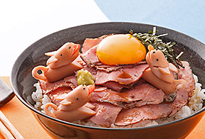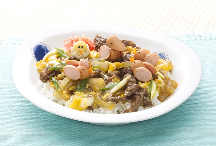 トリの仲間を飾って、賑やかなどんぶりにしましょう。