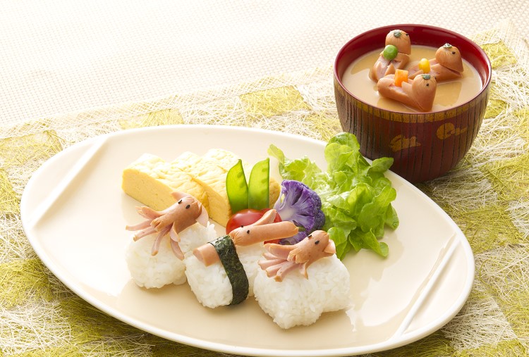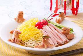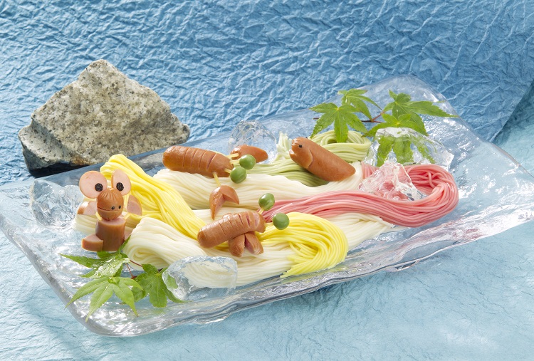 だんだんと暑くなってくるこの時期。水辺の仲間たちをトッピングしたそうめんに子供たちも大喜び。