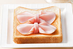 飾り切りブタさんの鼻はスライスチーズを丸く切りゴマをつけると愛らしいよ。