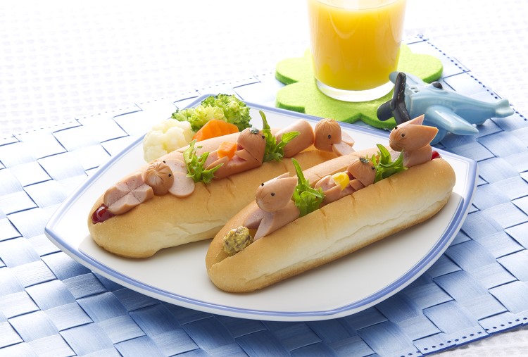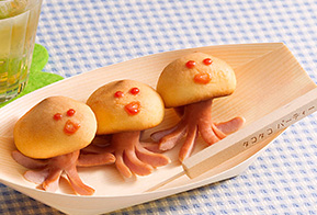 ロールパンに飾り切りのゴーストやタコさんを挟み込んだ楽しいハロウィンメニューです。