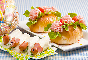 イースターのグラタンは、卵とウインナーのうさぎたちで大賑わい。