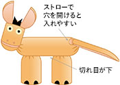 F(しっぽ)はストローを使って穴を開け、差し込みます。