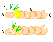A(頭)を180°回転させ先端に、への字に切り込みを入れる。