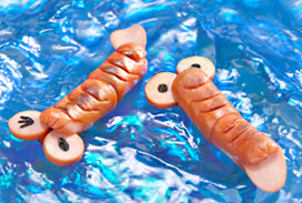 2本のウインナー片端しを5mm幅に直角に切る