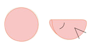 ハムを半分に折り、ハムの右下を三角に切りとり左側中央に1cm切り込みを斜めに入れる