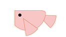 1で切ったパーツを半分に切り(尾びれ胸びれ)右端に尾びれ、中央部分に胸びれをつけ丸く切ったのり(目)をつけて出来上がり