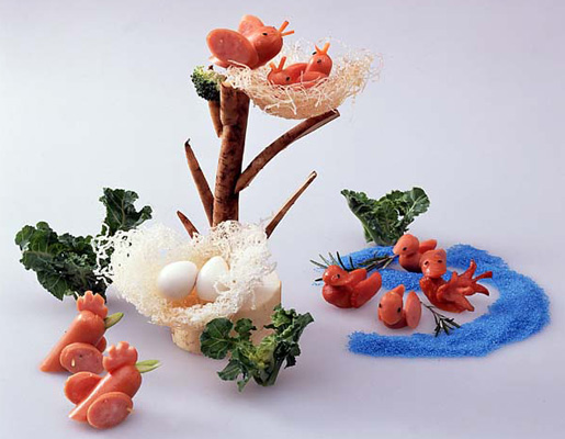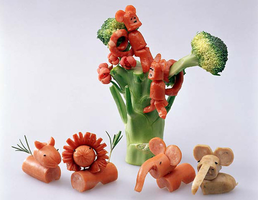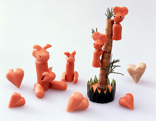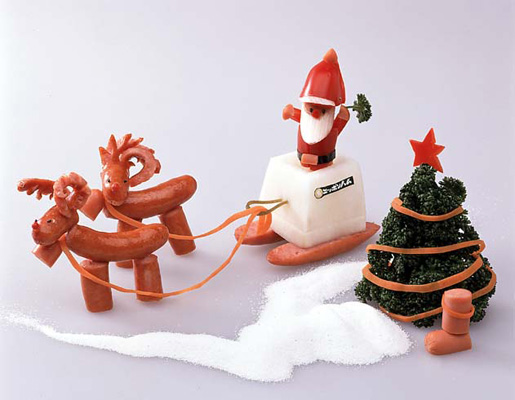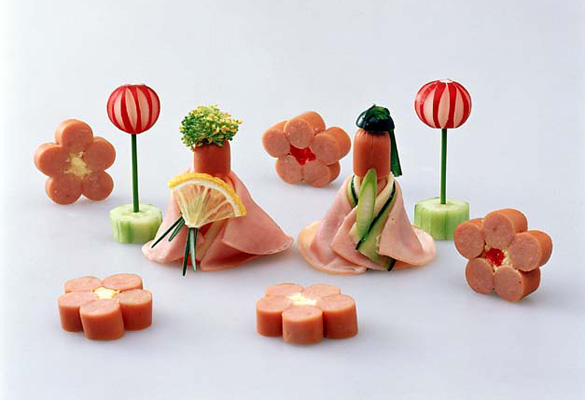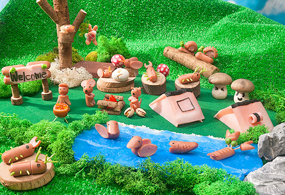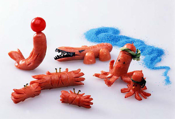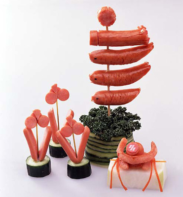 飾り切り王国へようこそ。ウィンナーやハムで作った飾り切りの仲間が大集合!