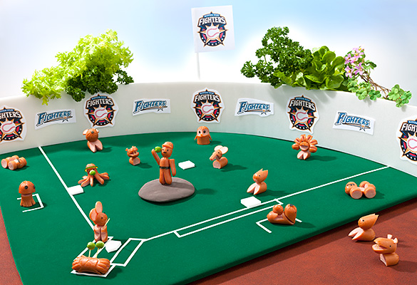 飾り切りの動物たちも、ファイターズを応援。