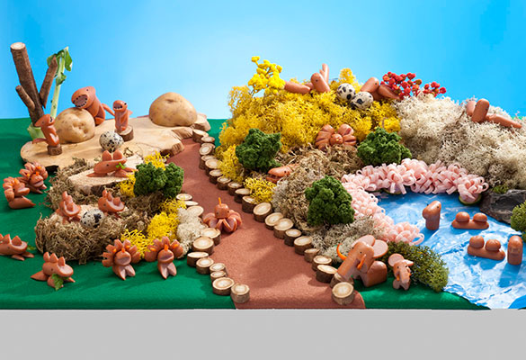 野菜の上に動物を乗せるとジャングルに変身!