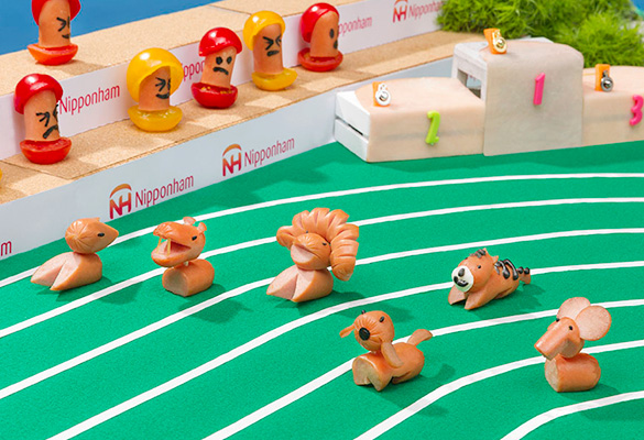 スノーパーク飾り切りの動物達も観戦!応援!盛り付けを工夫しすることで華やかになります。