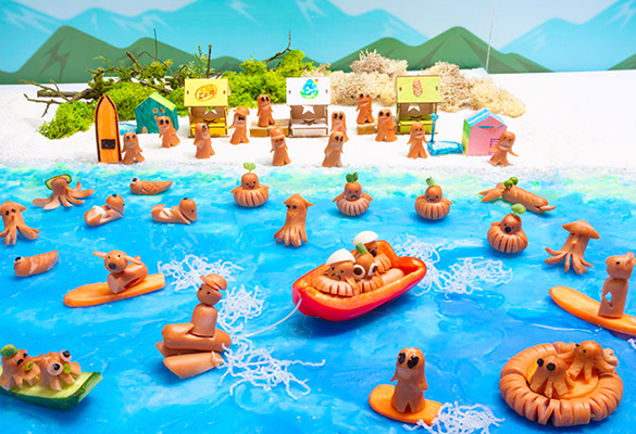 ウインナーの飾り切りは平成から令和へ受け継がれます!水辺の生き物達は進化し続けます。