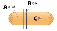 Cに縦にV字に切り込みを入れ、さらに横にしてもう一度V字に切り込みを入れます。最初に切り取ったパーツ(D)は尻尾に使います。