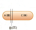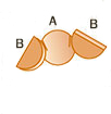 A(顔)の両端に切り込みをいれB(耳)を両側に差し込む