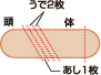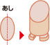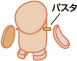 足を絵のように半分に切り、その上に体をのせパスタでとめます。
