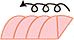ずらして重ねた生ハムの下から1/3を上方向に折り上げます。