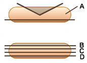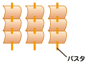 切り分けたB、C、Dを半円の状態にし、3枚をパスタで、それぞれさしていく。